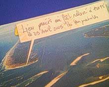 je recherche tout temoin potentiel ayant pu voir la moïndre chose durant les 2 nuits precedent la journee du 29 avril dernier je vous envoi donc une carte de geolocalisation pour situer avec precision l,endroit ou fut releve les empreintes les temoins peuvent etre surtout des pecheurs sur la plage pointe sud du cap - ferret ,33.departement francais de la gironde ,en aquitaine geolocal. (voir pieces jointes) ( ...le cap-ferret qui constitut une petite peninsule,langue de sable de quelques centaines de m. de largeur,etendue au nord-ouest du bassin d'arcachon