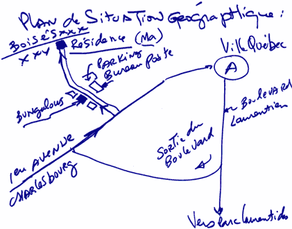 Pour ce qui est de la direction: supposons que dans le parc qui est face au fleuve St-Laurent, la ville de Québec est à ma gauche, je regarde le fleuve: l'objet stationnaire (le + gros) est à ma verticale, le petit décroche et part vers le fleuve, vitesse d'un bon cycliste, selon mon observation. L'autre n'a commencé à diminuer de grosseur, en montant à la verticale, que quand le petit objet devait avoir dégagé de =/- 10 à 20m (échelle vue du sol, évidemment). Ces objets ressemblaient un peu comme à l'étoile du berger: lumière, jaune-blanche, pas de scintillement. Les grosseurs sont, comme vous le dites, vues à bout de bras. La durée pourrait s'évaluer en l'espace de 2 à 3 minutes au gros maximum, je pense.Pour ce qui est des autres observations, je vous dirai toujours les mêmes choses, invariablement. Les ordres de vitesses sont sensiblement les mêmes. La localisation: il faudrait que vous ayez une carte de la région de la ville de Québec. Je peux en scanner une pour vous, avec tracés. Mais soyez assurés que dans 20 ans, je pourrai vous décrire la même chose, sans aucune déviation! C'est ce point-là qui me rassure!
