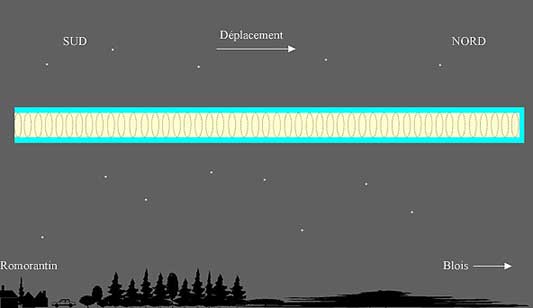 Ce samedi matin, allant travailler, sorti de la maison et juste avant de monter dans ma voiture, j'ai ressenti le besoin de regarder le ciel comme si quelque chose ou quelqu'un m'invitait à le faire!? De derrière le toit de la maison, en plein ciel sans nuages, à une altitude difficile à estimer (plus ou moins 10'000m), un immense "tube" lumineux, sur une trajectoire droite et régulière en déplacement sud-nord en direction de Blois, m'est apparu......