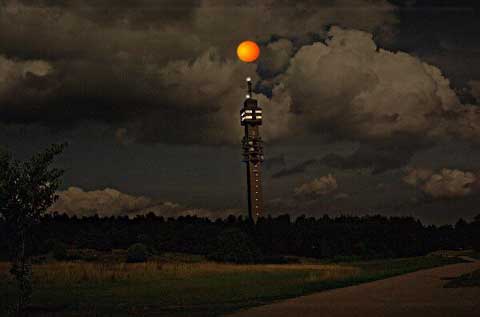 L'observation suivante se produisit lors d'un trajet en voiture, il y a quelques années avec mes amis. Juste pendant un court moment, entre quelques arbres et des bosquets, tout en roulant, j'aperçus la lumière de la tour de TV à Stockholm (Kaknästornet). Je ne peux croire que cela m'arrive à moi, me suis-je dit. Un objet en forme de grande boule était suspendu au-dessus de la tour.