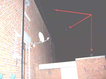 Ces boules blanches étaient lumineuses, aux contours très nets, et en formation fixe, ne clignotaient pas. Celles du centre étaient d'un diamètre réel d'environ 3 à 4 mètres, et laissaient comme une traînée orangée derrière elles, d'environ 3 mètres. Elles aussi étaient nettes, mais la traînée qu'elles laissaient derrière elles était floue et de longueur constante. La taille totale de la formation était d'au moins 20 mètres en diamètre. Je me base sur la taille des maisons qui étaient en dessous pour mesurer les boules, et notamment la maison d'un camarade de classe que je connaissais bien. La durée était celle qu'il faut à ces "objets" pour traverser le ciel de part en part à la vitesse décrite... soit environ 10-15 minutes. La distance entre la rue où j'étais et la formation dans l'autre rue, est d'environ 300-400 mètres (on peut vérifier sur carte bien sûr), et j'ajoute que mon copain avait observé la même chose exactement. Le ciel était tout à fait dégagé.