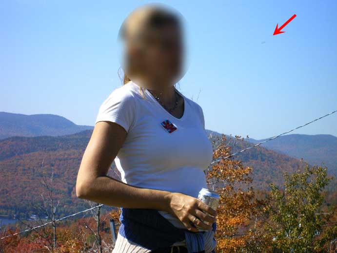 Le soir, en rentrant chez moi, je revisionne les clichés de la journée, quand je tombe sur une photo de ma femme et mon fils avec dans le champ à gauche un objet...
