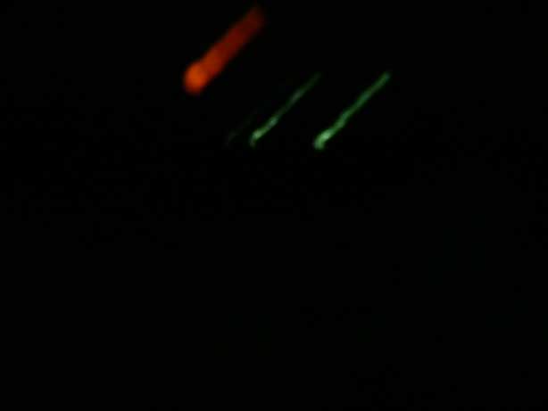 Après cinq kilomètres de route, à notre gauche non loin d'une ferme et d'un petit bois (le ciel était très clair car il faisait froid), nous avons aperçu des lueurs et j'ai tout de suite prévenu mon père qui conduisait pour lui dire que je ne m'étais pas trompé et qu'il y avait bien un incendie. Mon père s'est garé sur le côté pour voir si ce n'était pas une ferme qui brûlait, dont nous connaissions les propriétaires. On a observé ces lueurs jaune rouge pendant environ trois minutes, puis tout s'est éteint d' un coup.