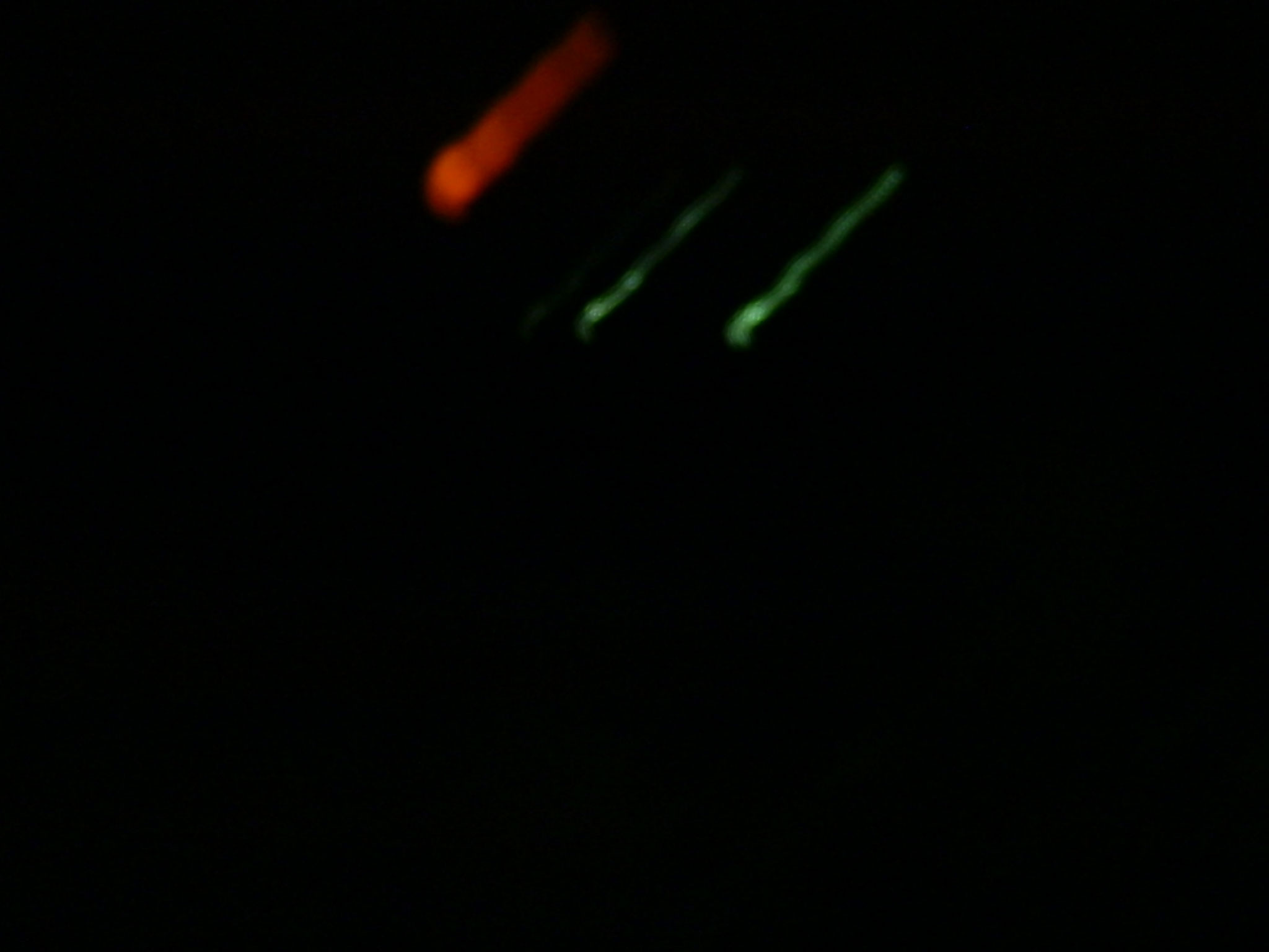 Plus tard dans la soirée, deux alertes: apparu dans Persée, voici, semble-t-il, le même objet. Mais il avance bizarrement: il tourne, va, revient, bref un parcours erratique! Il disparaît comme l'autre, vers Hercule! Et encore une fois, un peu plus tard: et là, c'est au-dessus de nous: une chauve-souris! Elle bat des ailes et est éclairée par ces foutues m... de boules orangées!