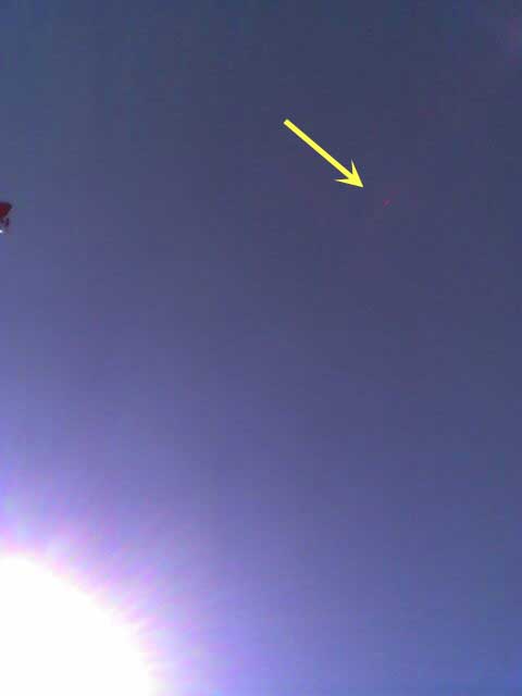 Il a donc observé plusieurs lumières en train de se déplacer dans le ciel en plein jour. Au bout de quelques minutes il a trouvé ce ballet étrange et a pris une photo avec son téléphone portable en ayant peu d'espoir d'avoir une preuve exploitable.