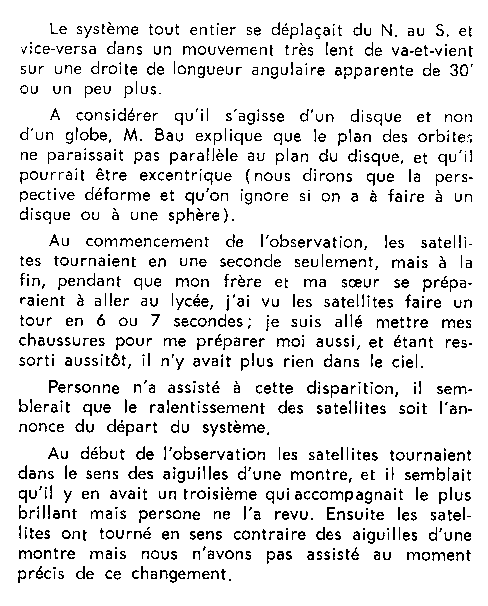 - Oui, bien sûr, puisque le ralentissement des satellites a failli retenir mon attention. Seulement depuis 20mn, je commençais à bouillir et je faisais des plans pour aller prévenir avec mon solex des copains qui habitaient à quelques km. On n'avait pas le téléphone! Et je n'ai quitté des yeux l'engin spatial que pour battre le "record du monde" pour mettre des lacets de chaussures.Lunette utilisée: Admiral 1000, 60mm, zoom 60X. Plutôt une très bonne lunette pour le prix, à l'époque.