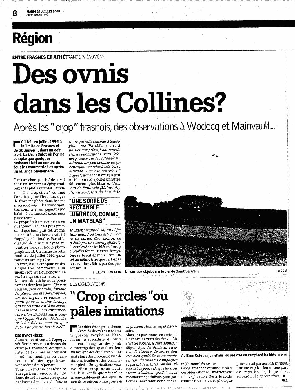 Je voudrais ajouter que j'ai soixante ans, que je passe pour une personne équilibrée et rationnelle. Mon fils est pilote d'avion et également pilote de planeur. J'ai donc l'habitude d'observer ceux-ci et je puis vous certifier que ce n'était ni un avion, ni un hélicoptère, ni un dirigeable, et que je n'ai pas eu la berlue.
