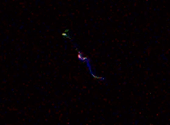 Il y a trois semaines, de mon balcon, à 23h00, j'ai assisté à la vision d'une lumière intense, comme un tube de néon de la taille d'un pouce bras tendu qui apparaissait et disparaissait en une fraction de seconde.