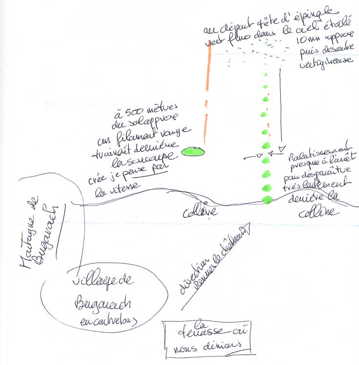 C'était une très belle journée, le ciel était bleu. Tout d'un coup, à ma gauche, avant la descente du bois de Perrignier, je vois en approche un objet de couleur claire, non pas floue mais nette.