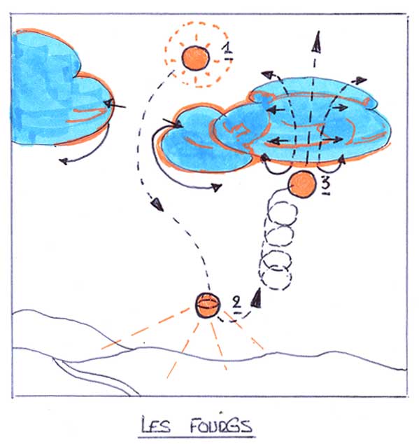 Subitement les bruits de la nature faiblissent, des grillons, pourtant nombreux, se taisent, c’est le silence total, un silence de mort!Un pressentiment me pousse à lever les yeux, et je pousse une exclamation, un «ho!». Au- dessus de la couverture nuageuse se trouve une SPHÈRE «ionisée», orange, parfaite, et stationnaire.