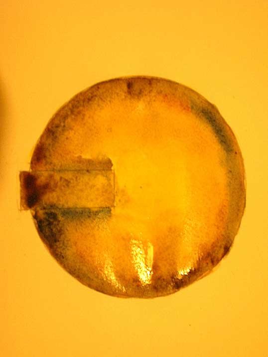 Taille apparente: entre un petit pois et une noisette tenu à bout de bras.