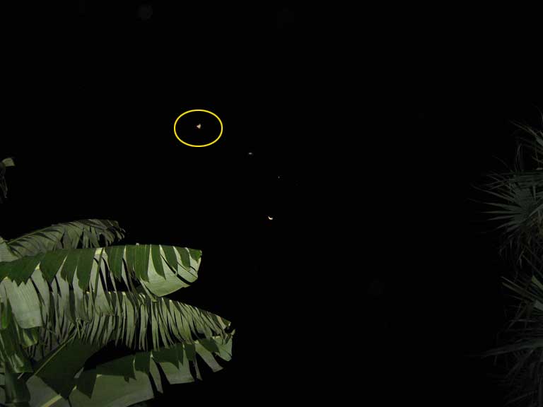 Pendant vingt minutes le gros point ne bougea plus alors que les autres bougeaient un peu. Par moment ils se mettaient comme une flèche.On ne sait pas ce que c’était et quand on a pris des photos, ça ne donnait qu’un simple point.
