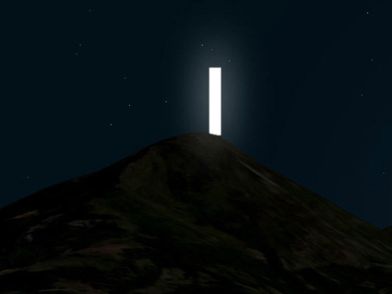J'avais la montagne en face de moi et pendant qu'il parlait j'ai vu sortir de derrière celle-ci, un tube blanc très lumineux qui semblait immense, plus petit que la montagne bien sûr, mais vu la distance, il était quand même gigantesque (sûrement plus de 300 mètres de haut). Il montait très lentement à la verticale. J'ai montré à Mariano l'objet, il a regardé, et m'a pris contre lui en me disant de ne pas avoir peur. Je me suis dégagé quasiment de suite pour continuer à regarder, mais il n'y avait plus rien.