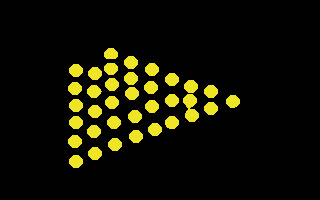 J'habite Avignon et le soir du 05/09/97 j'étais chez des amis aux Angles dans le Gard (près de l'observatoire) et nous étions dehors à prendre le frais et regarder le ciel étoilé, quand, à 21h45, est passé en l'air, une formation triangulaire de disques lumineux de couleur jaune orangé se dirigeant du sud vers le nord à une élévation de 70° à 80° par rapport à l'horizon ouest, en vol horizontal.La dimension apparente du triangle correspondait à environ 10cm.de coté à bout de bras. La dimension apparente des disques correspondait à environ 5mm à bout de bras.