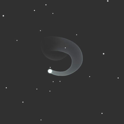 A partir du développement de la spirale, elle est restée parfaitement statique par rapport au point. Aucune flammèche ni débris. L'intensité lumineuse de la queue était nettement plus faible qu'une étoile filante, "ça ne faisait pas la cicatrice dans le ciel".