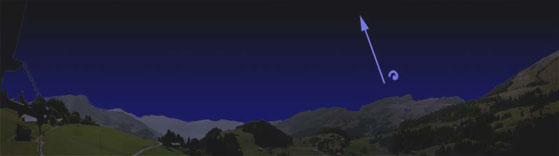Le temps est magnifique, le ciel limpide, idéal pour admirer la voûte étoilée.L. regardait vers l'ouest, en direction des Tours D'Aï. Il vit apparaître, venant du nord-ouest et se dirigeant vers les sud-est, ce qu'il prit tout d'abord pour un satellite parce qu'il en avait déjà vu plusieurs ce soir-là, et que la vitesse de déplacement était comparable. Mais ce satellite a grossi, le point blanc, très lumineux est devenu plus gros que Mars, bien plus gros qu'une étoile. Puis s'est développée assez rapidement une sorte de queue en spirale à partir du côté droit du point, par rapport à la trajectoire, jusqu'à l'avant de celui-là.