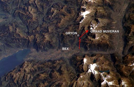 L'objet continua de s'élever d'abord en vol rectiligne, puis avec de légers zigzag, s'immobilisa, pivota sur lui-même d'un quart de tour à droite (sur place) et reprit son rythme lent de déplacement, mais en direction du Grand Muveran. Il donnait l'impression de faire vibrer l'air (comme les déformations optiques dues à un feu). Il finit par disparaître derrière ce sommet.