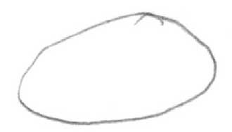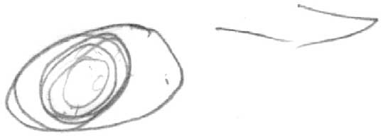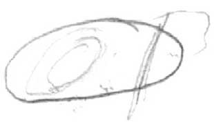 4 schémas du témoin effectués sur les lieux de l'observation, le 25 mars (illustrant le début de l'observation). Selon le témoin, celui du haut à gauche est celui qui ressemble le plus au phénomène. La barre oblique signale simplement que, parfois, l'objet rapetissait. Dans le 3e schéma, on voit les cercles concentriques et la direction de vol.