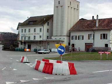 Ce garage est toutefois situé plus haut que la station-service du même nom, l'observation était donc terminée lorsque le témoin est arrivé à la hauteur de ce garage, qui vend des voitures, ce n'est pas une station-service. Celle-ci se trouve un peu plus bas et de l'autre côté de la rue (du même côté que le moulin).
