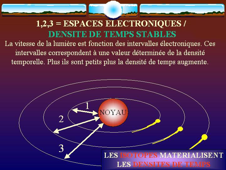 La matière a une dualité corpusculaire / ondulatoire. C'est précisément dans le passage de l'un à l'autre, du corps vers l'onde, que se manifeste l'augmentation de la densité de temps, avec au passage la perte de masse (neutrinos, photons, électrons, tachyons). Là aussi une confusion est née depuis Newton. La masse n'est pas la gravitation même si les effets de la nature nous en donne l'illusion dans notre densité de temps. La masse est liée aux forces de cohésion. L'une des plus grandes énigmes de la physique est l 'écart d'échelle entre les interactions fortes, faibles et électromagnétiques d'une part, et la gravitation d'autre part. Pour mémoire, la gravitation est 1040 moins élevée que l'interaction forte.
