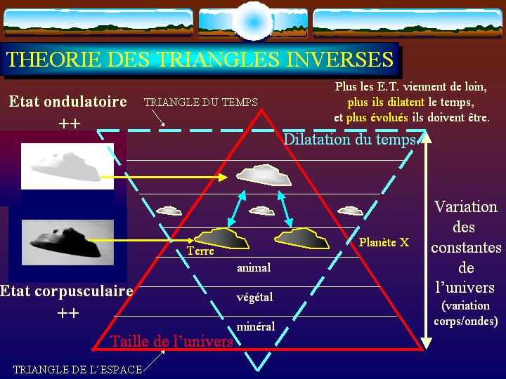 Il n'aura échappé à personne que le symbole de la pyramide, commune à plusieurs peuples d'un lointain passé, dans une approche en trois dimensions, tant pour l'espace que pour le temps, est une coïncidence pour le moins troublante. De même, les deux triangles inversés ne représenteraient-ils pas une "puissante" étoile à six branches cachant peut-être une signification ésotérique connue il y a fort longtemps? Nos ovnis ne semblent pas tomber de la dernière pluie surtout s'ils sont à l'origine de ces symboles. L'Apocalypse n'est-elle pas révélation?