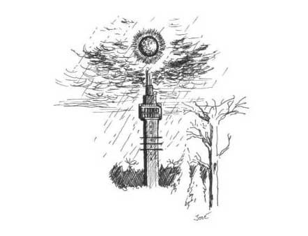 L'observation suivante se produisit lors d'un trajet en voiture, il y a quelques années avec mes amis. Juste pendant un court moment, entre quelques arbres et des bosquets, tout en roulant, j'aperçus la lumière de la tour de TV à Stockholm (Kaknästornet). Je ne peux croire que cela m'arrive à moi, me suis-je dit. Un objet en forme de grande boule était suspendu au-dessus de la tour.