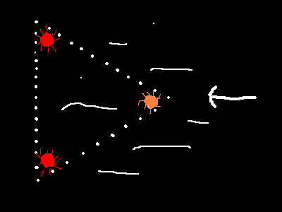 sphère brillante bougeant dans tous les sens et disparaissant en flash.