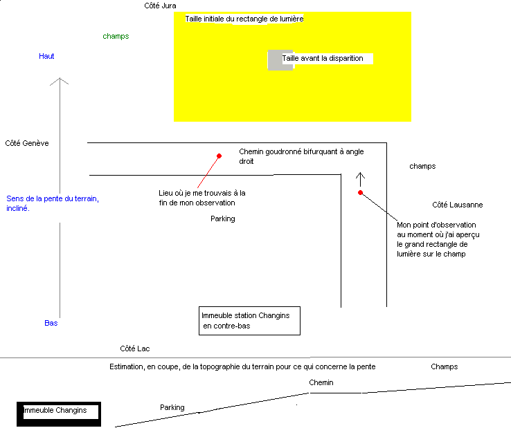 Voici un schéma de l'observation, le ciel était clair et dégagé.