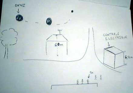 La sphère se trouvait exactement à la verticale, entre 15 et 20 mètres de hauteur, il était au-dessus d'un pavillon dont la hauteur ne dépasse pas 10 mètres, et l'objet, à son point le plus proche, était à peine au-dessus de l'antenne télé du pavillon
