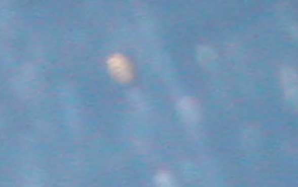 J'ai une photo prise lors d'un vol en avion ligne Air France, vol entre Montpellier et Clermont-Ferrand, France, le 5 octobre 2003 (vol 15h10>16h40). Cette photo est une vue du ciel au-dessus d'une mer de nuages couvrant le Massif Central avec en fond l'apparition d'un point sphérique. Si on tient compte d'une éventuelle déformation du hublot, il peut s'agir de la lune. Qui pourrait me dire si la lune était visible à cette heure à 290°? Je n'ai rien remarqué à ce moment-là. Je viens seulement de voir, en plaçant cette photo en fond d'écran sur mon Bureau Windows d'ordinateur, cet étrange élément. Bien entendu, j'assure que cette photo n'a subi aucune retouche. Je tiens la photo à votre disposition.Vous trouverez ci-joint 3 photos. La photo n° 2 est la photo "qui me pose problème", les deux photos 1 et 3 prises juste avant et après la précédente ne sont adressées que pour mettre en évidence une éventuelle déformation du hublot de l'avion, de l'objectif si c'était le cas (je n'en vois aucune). Avec un petit programme appelé Winstars, j'ai pu vérifier que la lune n'était pas visible à ce moment-là (sauf erreur de ma part).