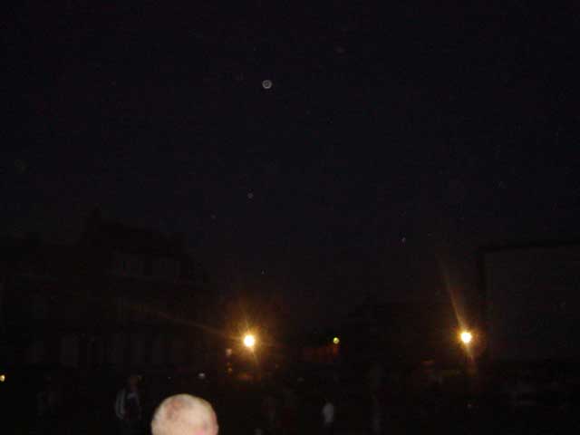 Durant un cinéma en plein air (le 12 juillet 2003) avec un ami, nous avons pris quelques photos. Sur quelques-unes on aperçoit des lumières et des points lumineux étranges. Nous avons profité qu'un photographe professionnel était à proximité pour lui demander de nous en dire plus et il nous a affirmé qu'il n'avait jamais rien vu d'aussi étrange. Le plus bizarre c'est que ces phénomènes (du moins si tel est le cas) n'ont pas été visibles à l'oeil nu. Je pense qu'il serait intéressant d'analyser ces photos afin d'en savoir plus sur les points lumineux.