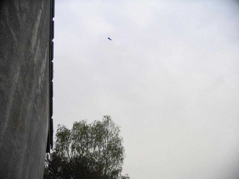 Il y a environ deux heures de l'envoi de ce message (témoignage reçu le 28 octobre 2006 - GREPI), j'ai observé un ovni dans le ciel. Il était environ quatorze heures lorsque un tube bleu passa au-dessus de mon jardin. Je suis immédiatement allé chercher mon appareil numérique et j'ai pris l'ovni en photo. Il se déplaçait lentement (vu du bas) vers la gauche de la photo, donc vers le nord.