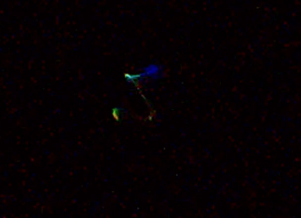Ce qui a attiré mon attention c'est d'une part l'absence de déplacement visible (il semblait rester toujours dans la même zone du ciel) et d'autre part les flashs multicolores qu'il émettait (bleu, rouge, vert, orange).