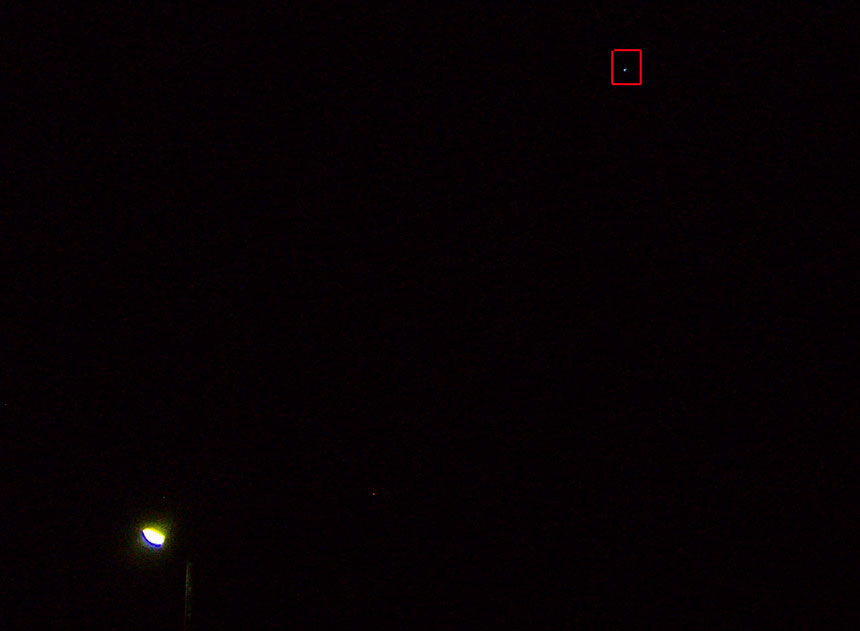 Étant étonné qu'une étoile puisse se voir dans ces conditions me semblait bizarre. Je m'arrête pour la contempler lorsque je perçois difficilement un mouvement.
