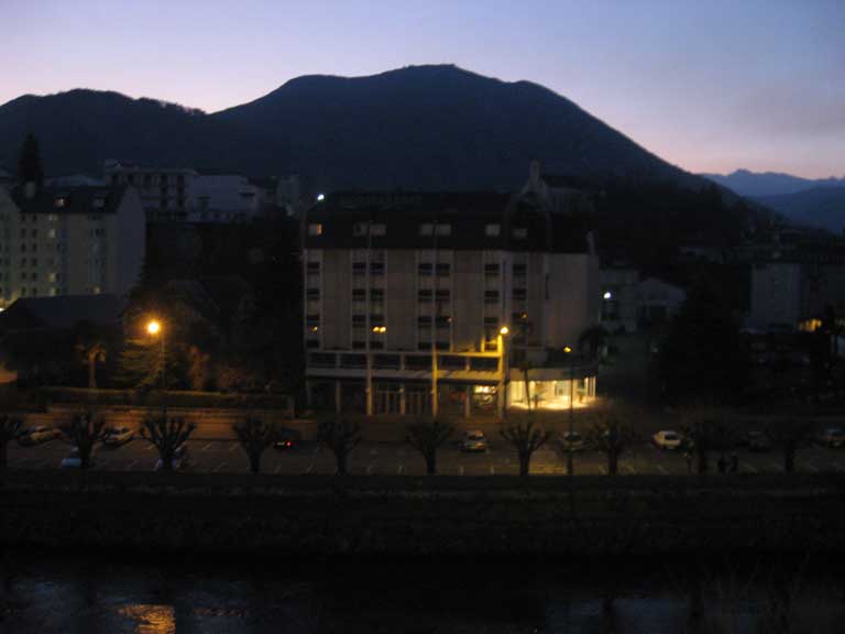 J'avais une chambre à l'hôtel Saint-Georges situé sur l'avenue Peyramale. Mes fenêtres donnaient d’ailleurs sur cette avenue et, au loin, il y avait des montagnes et une église (photo ci-jointe prise de jour).